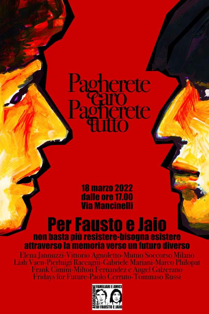 Non si può,pure in un tempo come questo infestato da pandemie e guerre, dimenticare l’assassinio di Fausto e Iaio per mano dei fascisti 44 anni fa.