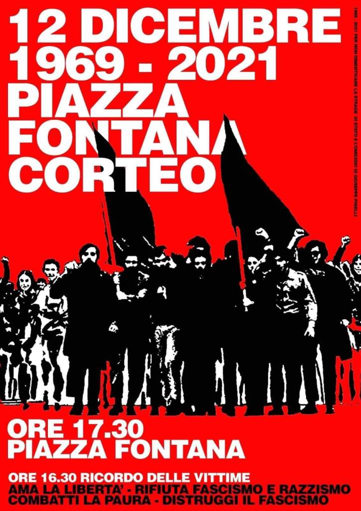 Le manifestazioni per commemorare la strage degli innocenti di piazza Fontana, l’incriminazione di Pietro Valpreda e la” caduta”di Giuseppe Pinelli dal quarto piano della Questura di Milano sono ritornate in piazza dopo il Covid.